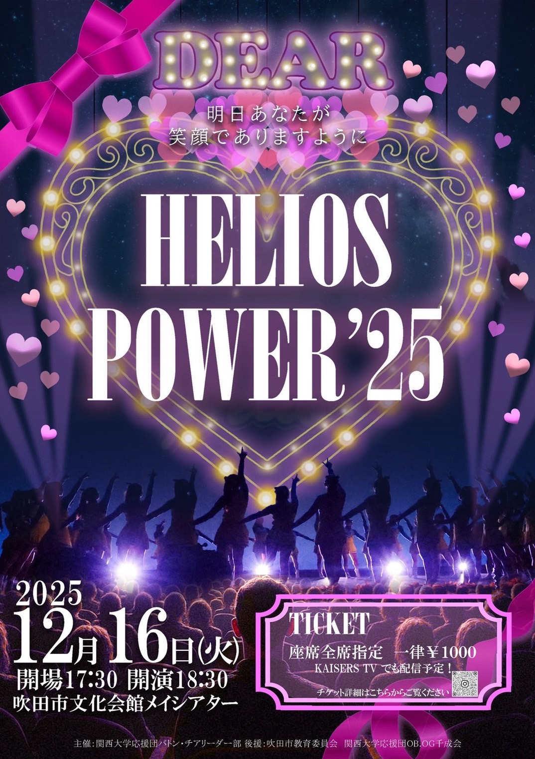 HELIOS POWER’25~明日あなたが笑顔でありますように~ 2025.10.302025.11.02 HELIOS POWER'25~明日あなたが笑顔でありますように~日時2025年12月16日(火)18:30開演場所メイシアター大ホール入場料全席指定 1,000円主催関西大学応援団バトン・チアリーダー部お問い合わせ先関西大学応援団バトンチアリーダー部HELIOS 山田稀尋:070-2305-9133チラシPDFダウンロード URL Copied!