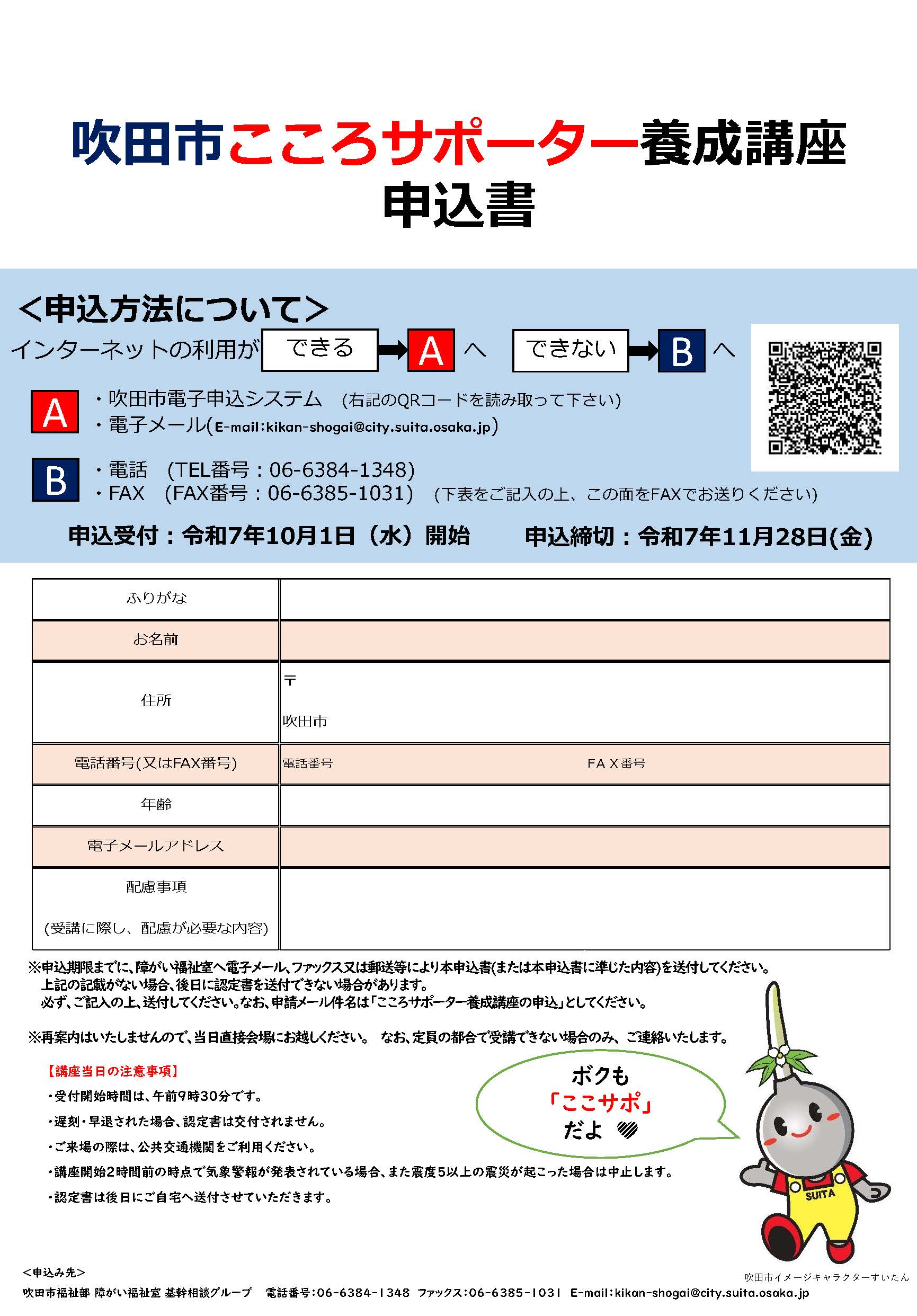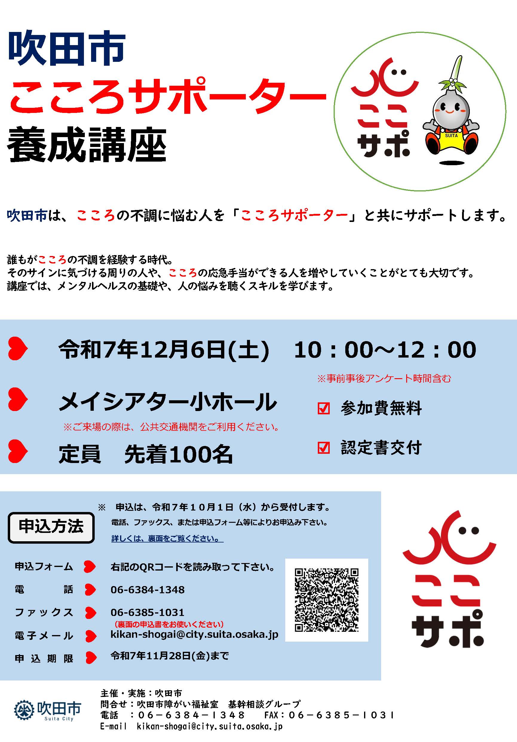 吹田市こころサポーター養成講座 2025.11.102025.11.27 すいたCOCOROフェス吹田市こころサポーター養成講座日時2025年12月6日(土)10:00開演場所中ホール入場料無料(要事前申込)主催吹田市お問い合わせ先吹田市障がい福祉室 基幹相談グループ:06-6384-1348チラシPDFダウンロード URL Copied!