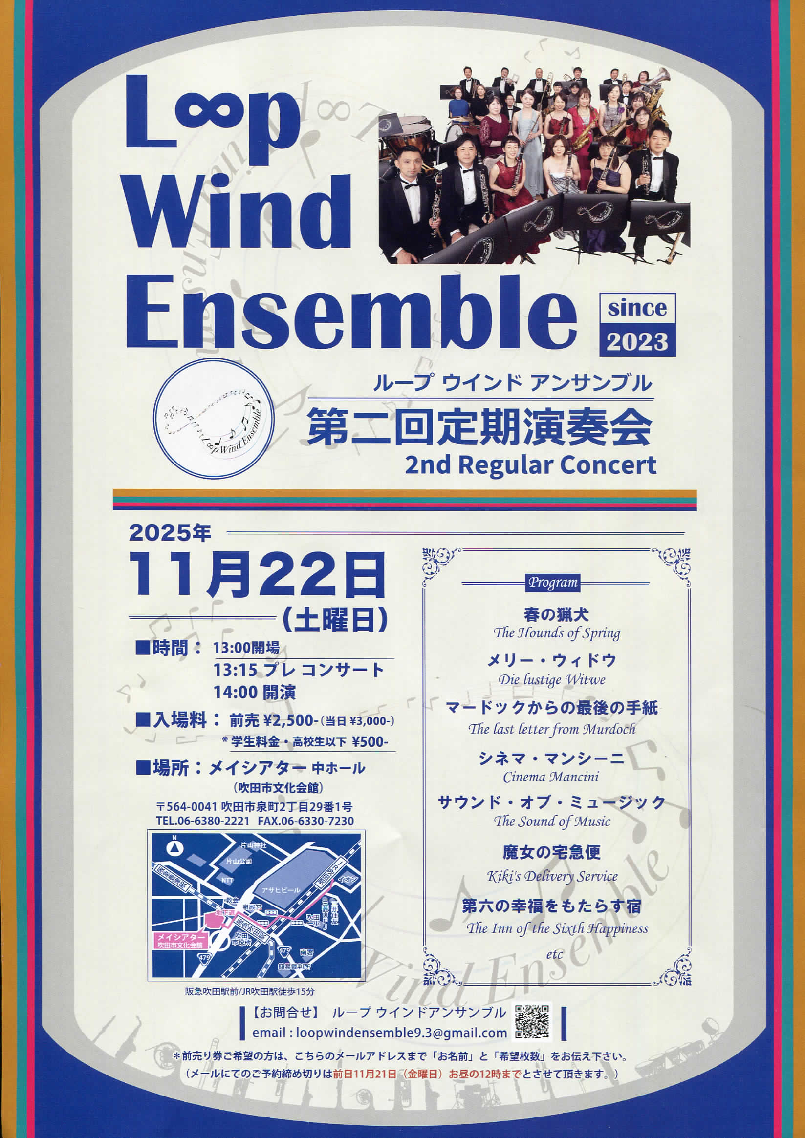 L∞P Wind Ensemble 第二回 定期演奏会 2025.10.172025.11.04 L∞P Wind Ensemble 第二回 定期演奏会日時2025年11月22日(土)14:00開演場所中ホール入場料前売:2,500円 当日:3,000円 高校生以下:500円主催L∞P Wind Ensembleお問い合わせ先loopwindensemble9.3@gmail.comチラシPDFダウンロード URL Copied!