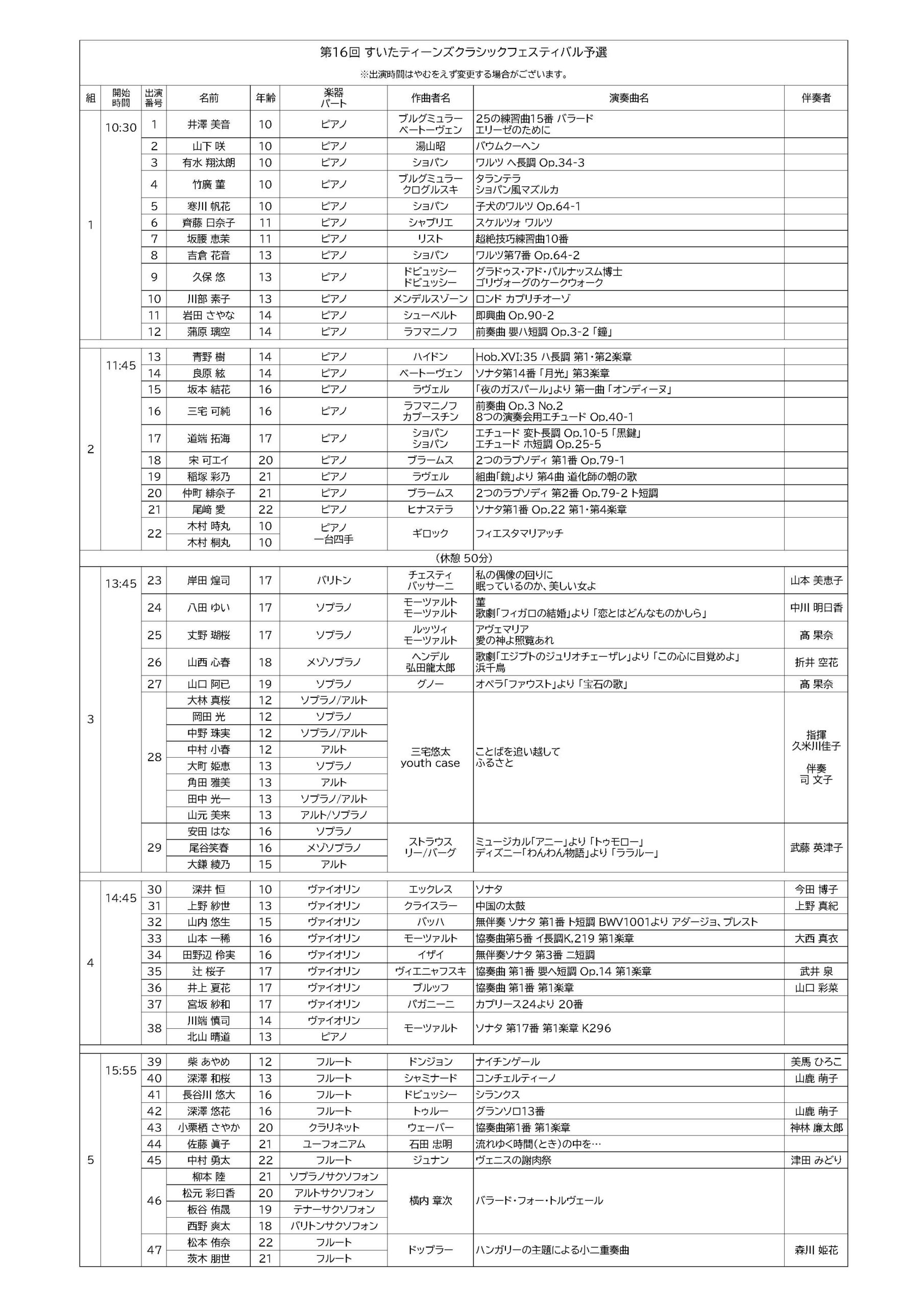 12月14日の本選をかけて、47組のティーンズがピアノやヴァイオリン、声楽等を披露します。