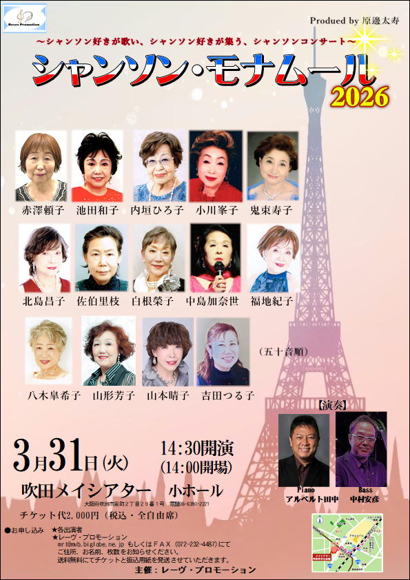 〜シャンソン好きが歌いシャンソン好きが集うシャンソン・コンサート〜シャンソン・モナムール2026